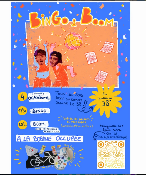 Ils vous invitent à un Bingo + Boom le samedi 4 octobre à la bobine occupée (42 boulevard Clemenceau) @filo_che 🙂