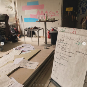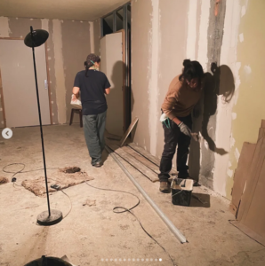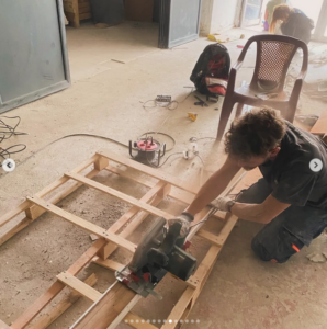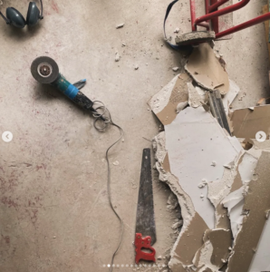 3 jours de chantier dans la bonne humeur du 38! On a fait beaucoup de pose de placo, de l’enduit, encore de l’enduit, des poses de cadres de portes et des portes coupe-feu, préparé des chemins de câbles, perçé, meulé, ponçé, scié!